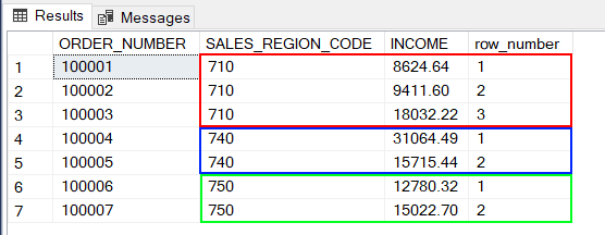 ROW_NUMBER() OVER (PARTITION BY SALES_REGION_CODE ORDER BY ORDER_NUMBER) AS row_number