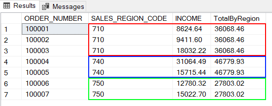 SUM(INCOME) OVER (PARTITION BY SALES_REGION_CODE) AS TotalByRegion