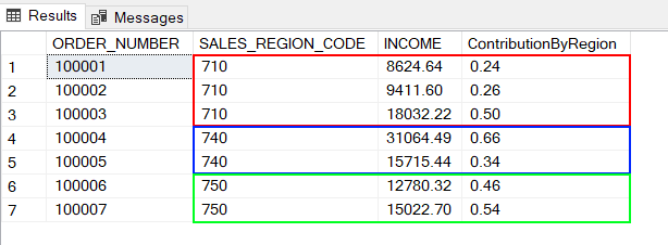 INCOME * 1.0 / SUM(INCOME) OVER (PARTITION BY SALES_REGION_CODE) AS ContributionPct