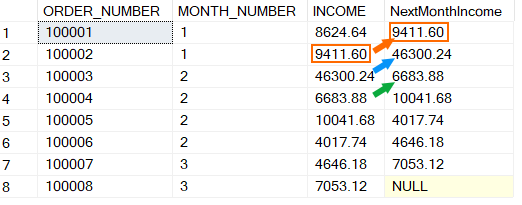 LEAD(INCOME,1) OVER (ORDER BY ORDER_NUMBER) AS NextMonthIncome