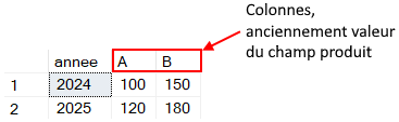 Faire pivoter la colonne produit (qui contient les valeurs A et B) revient à faire: